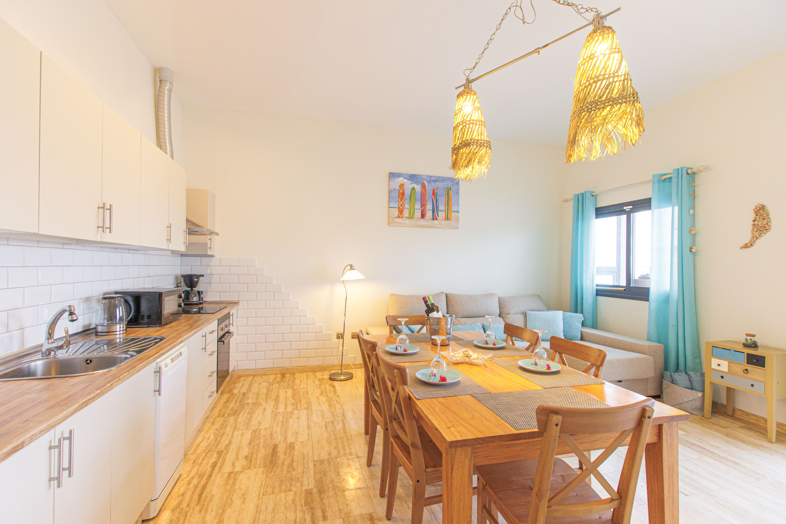 Wir heißen Sie in unserer gemütlichen Wohnung in El Cotillo willkommen, die ideal für Familien und Freundesgruppen ist, die unvergessliche Momente gemeinsam verbringen möchten. Der geräumige, 90 Quadratmeter große Raum wurde sorgfältig mit Blick auf den Komfort und die Bequemlichkeit der Gäste eingerichtet.