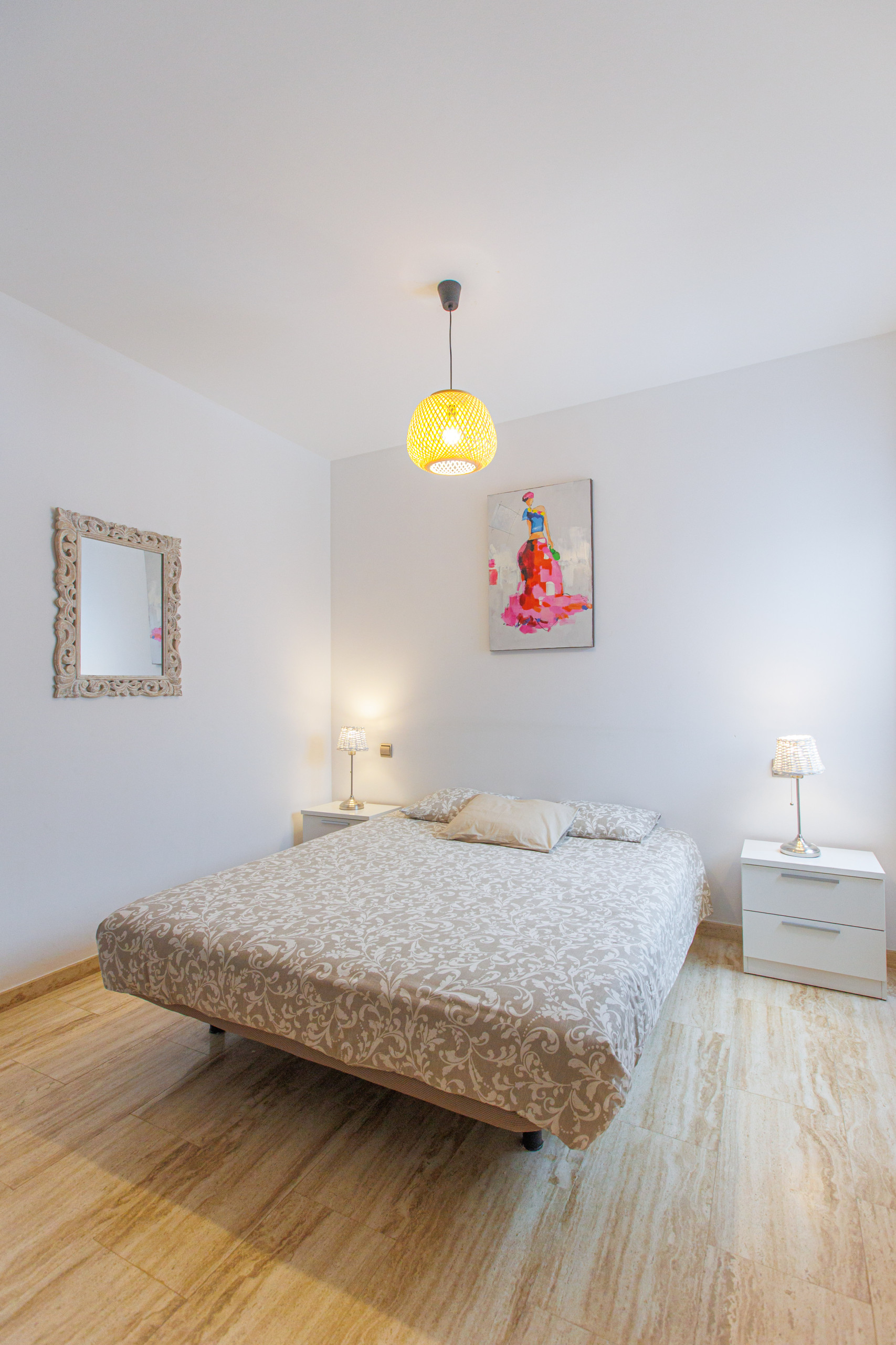 Die Wohnung bietet 3 Schlafzimmer mit bequemen Doppelbetten, die einen komfortablen Aufenthalt für maximal 6 Personen gewährleisten. Zwei moderne Badezimmer mit Duschen garantieren Komfort und Privatsphäre für alle Gäste.