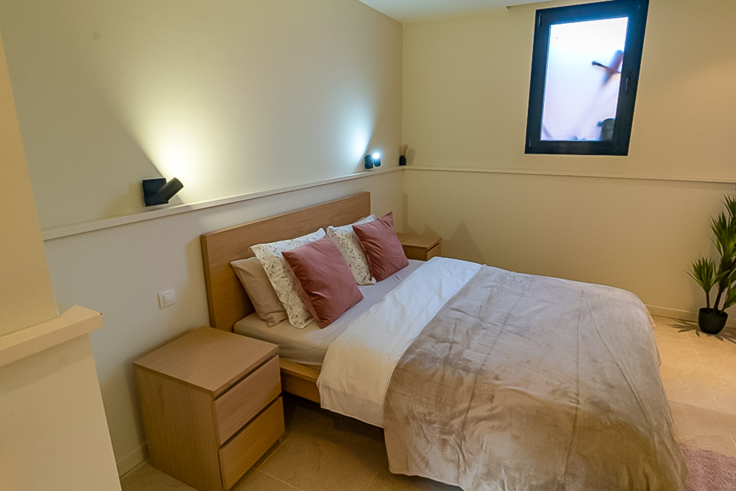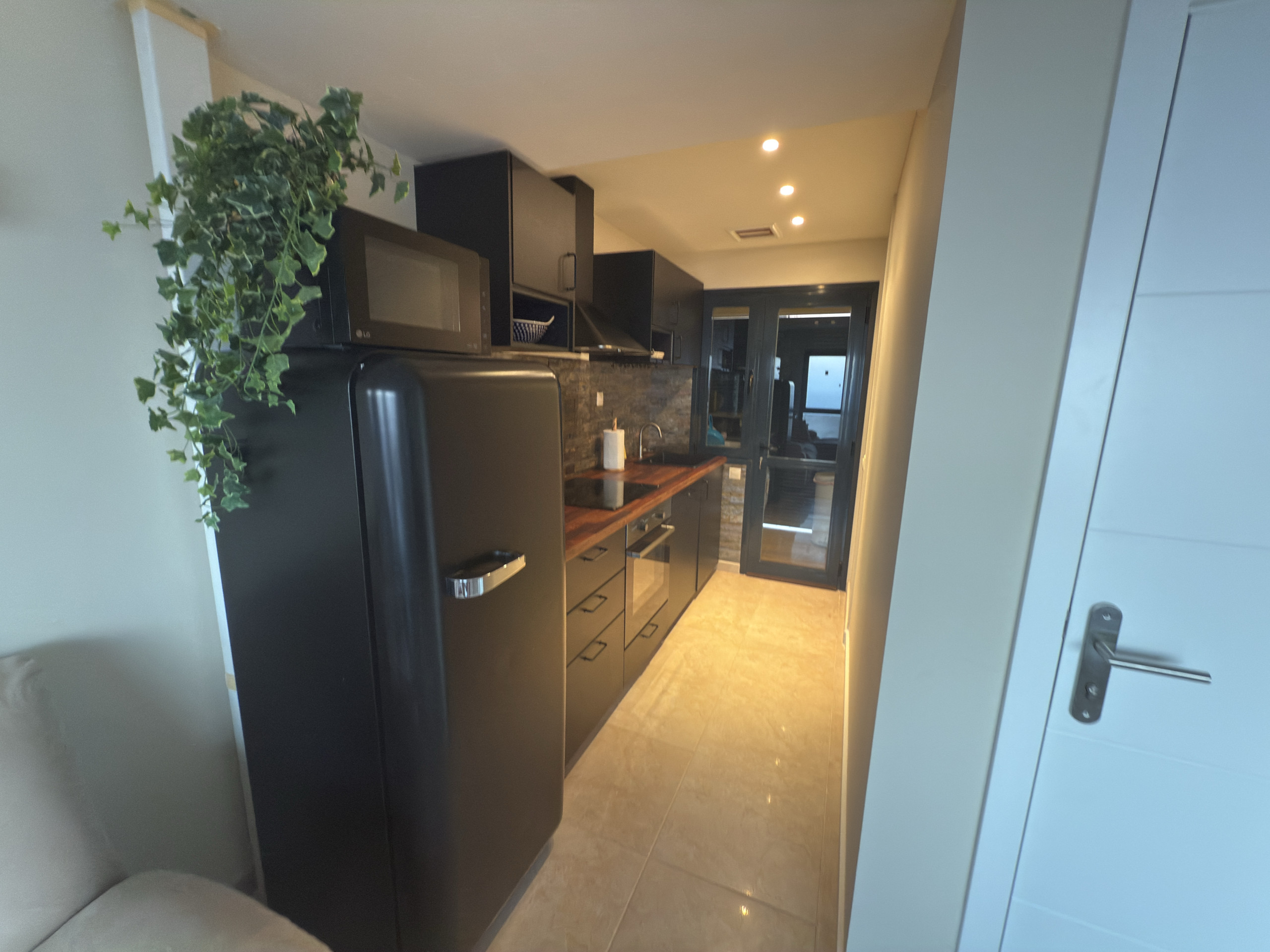 El apartamento cuenta con dos dormitorios con camas dobles cómodas, incluyendo uno con un sofá cama, lo que proporciona flexibilidad de alojamiento para un máximo de 4 personas. El apartamento tiene una cocina americana completamente equipada con electrodomésticos modernos, como lavavajillas, refrigerador, horno, microondas y cafetera.
