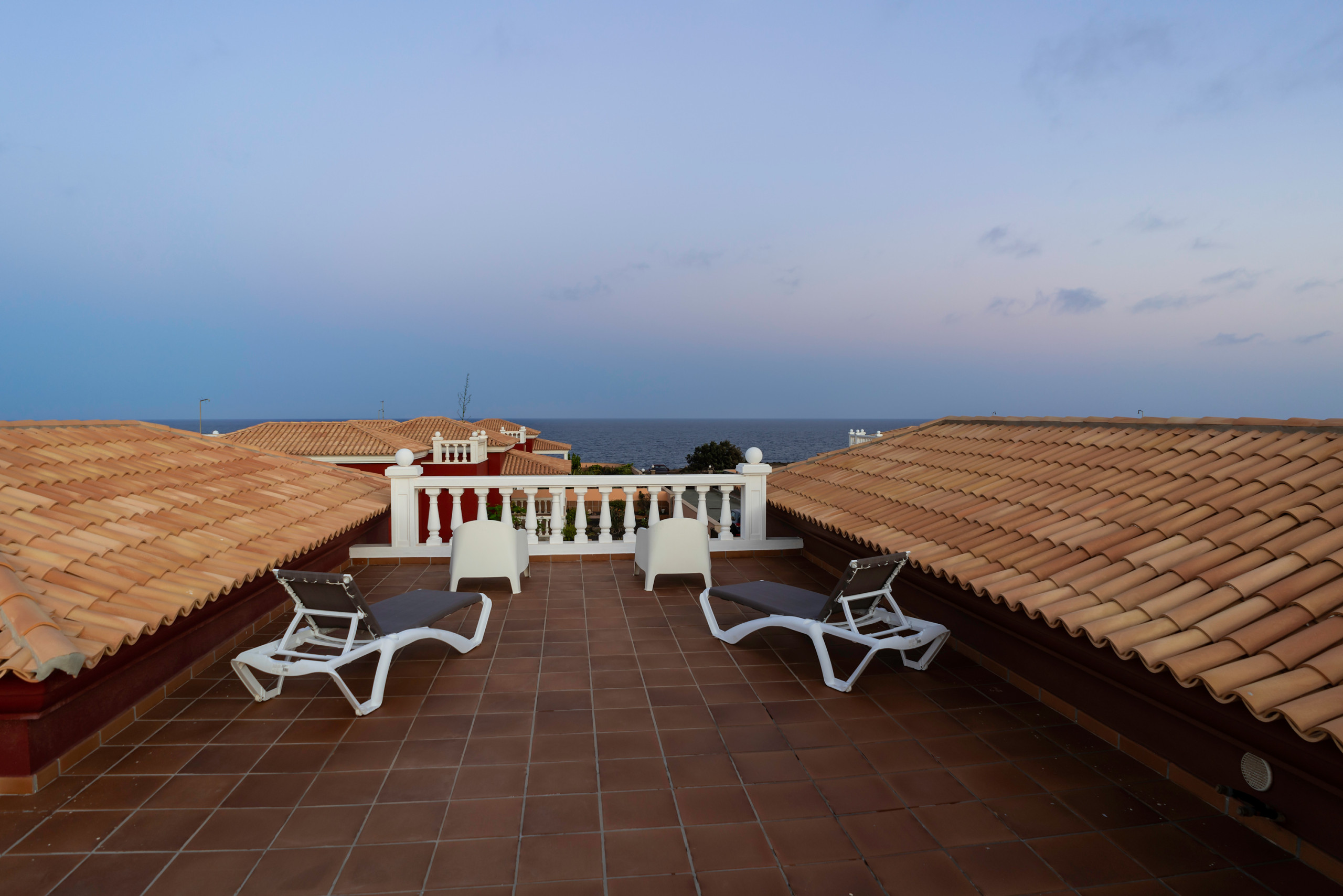 Outside, there is a private garden designed in an island style with a relaxation area, a spacious terrace with a barbecue and outdoor dining area, and a heated and illuminated pool, perfect for relaxation at any time of the year. From the roof, there is a viewing terrace from which you can admire sunrises and sunsets over the ocean – one of the most unique places in the villa. Each bedroom has access to terraces, garden, or pool.